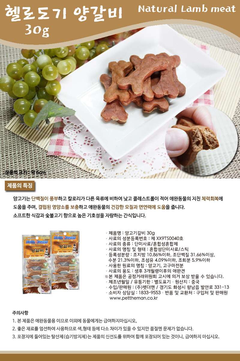 양고기를 갈아 뭉쳐 건조하여 스틱형태로 만들어 부드럽고 먹기 쉽게 만든 간식입니다.