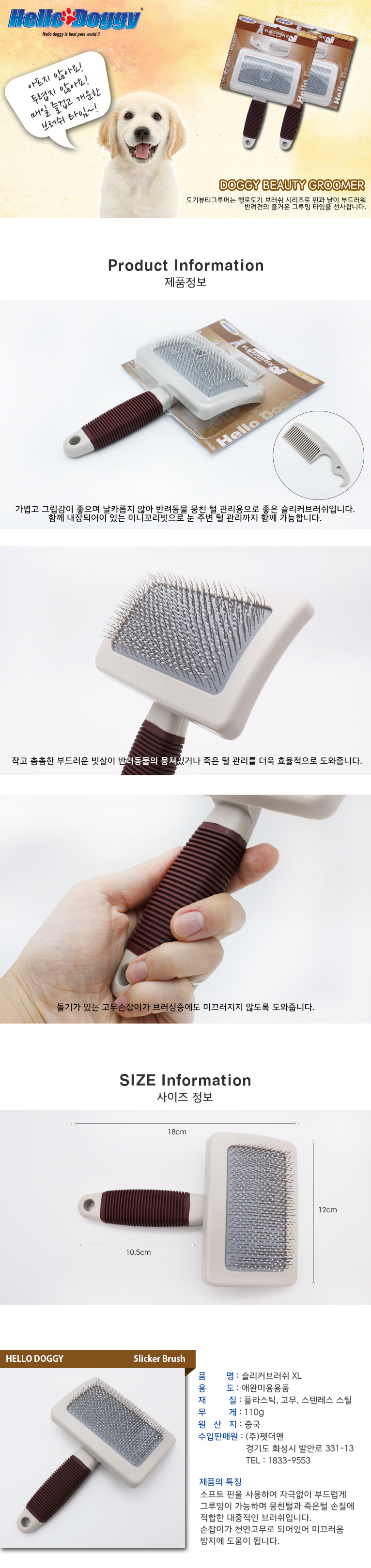 핀과 날이 부드러워 그루밍에 적합하고 심플한 디자인과 첨단공정으로 내구성이 뛰어나며, 소프트핀을 사용하여 부드러우며, 천연고무 손잡이로 미끄러짐을 방지하고, 손잡이 끝부분에 고리를 만들어 보관 및 사용이 용이합니다.