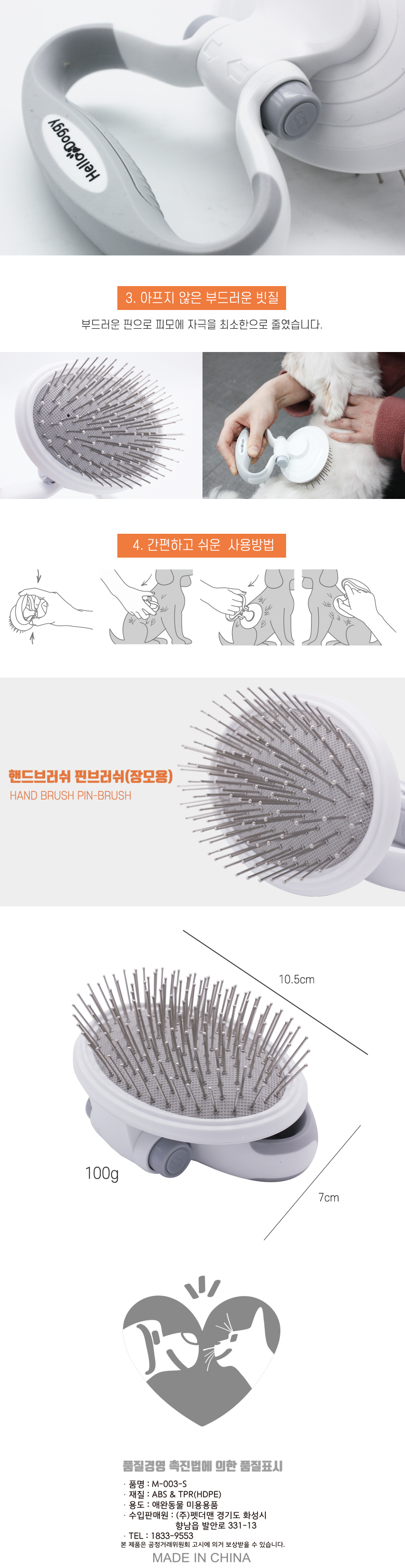 (헬로)07.스마트 핸드브러쉬-핀브러쉬(장모용) (랜덤발송)