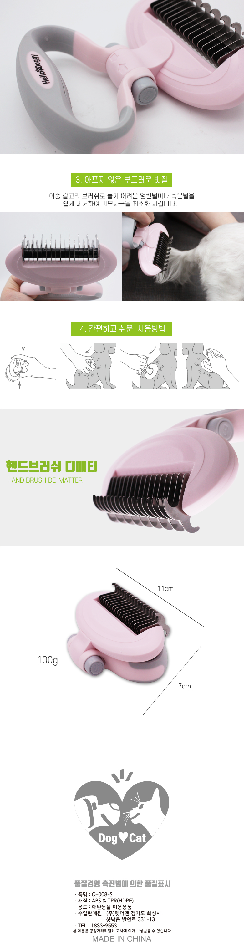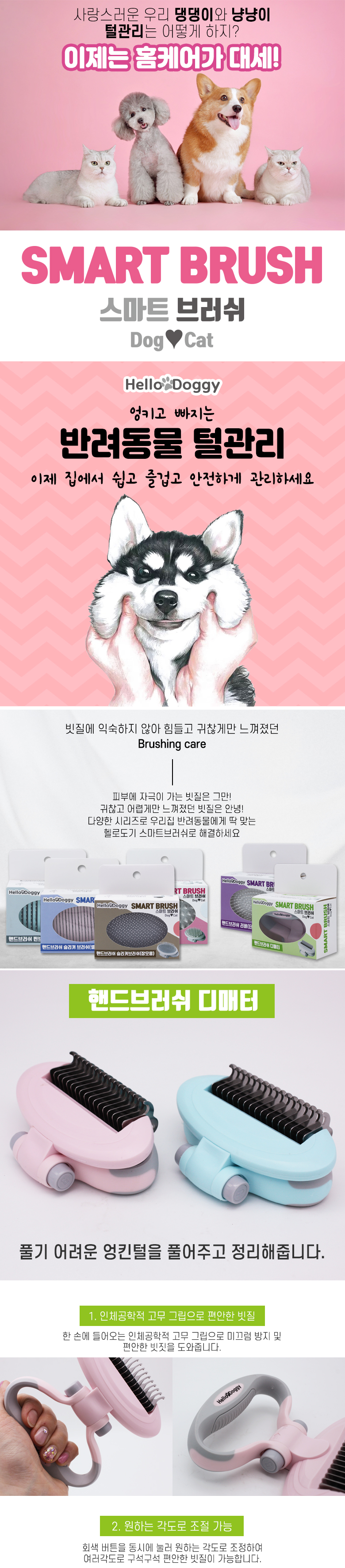 원하는 각도로 조정할 수 있어 여러 각도로 구석구석 빗질이 가능하며, 보관하기도 용이합니다. 풀기 어려운 엉킨털을 쉽게 풀어 제거해주고 정리해줍니다.