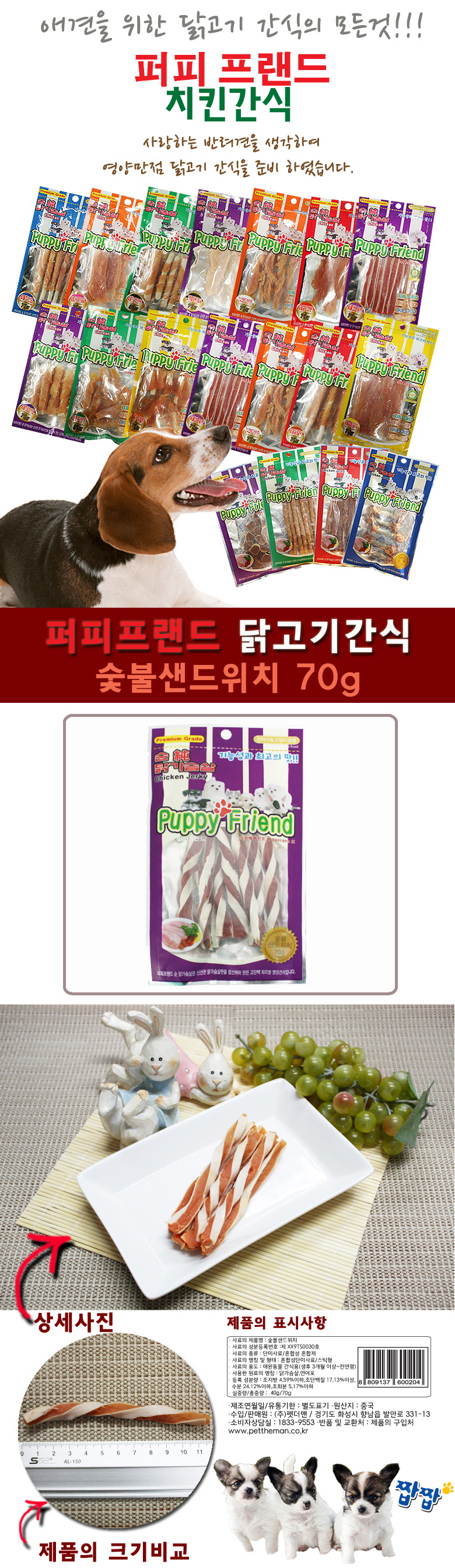 소우피에 신선한 닭가슴살을 말아 건조한 간식입니다.