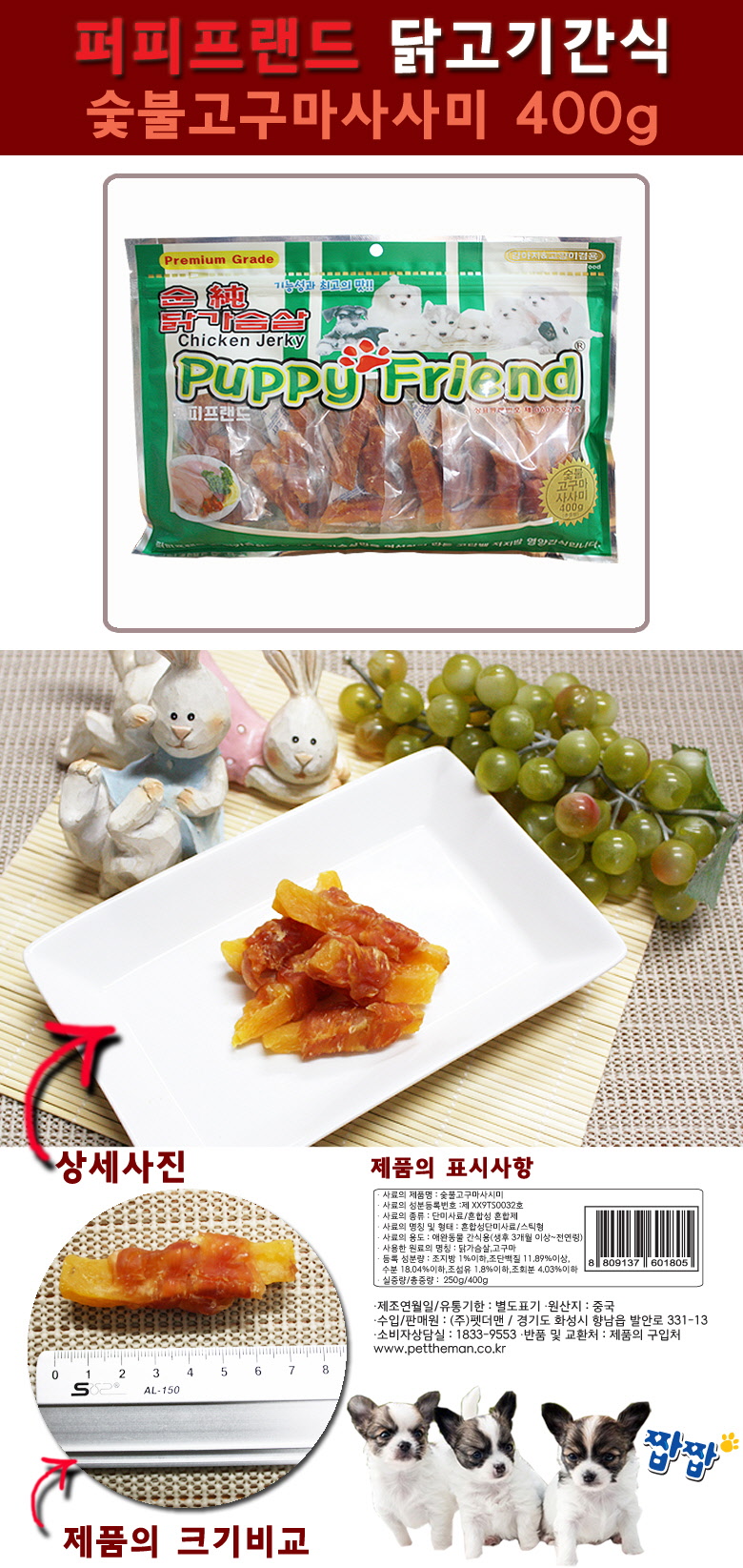 신선한 닭가슴살을 그대로 수분을 높여 건조시켜 부드러운 식감으로 촉촉하게 건조한 간식입니다.
