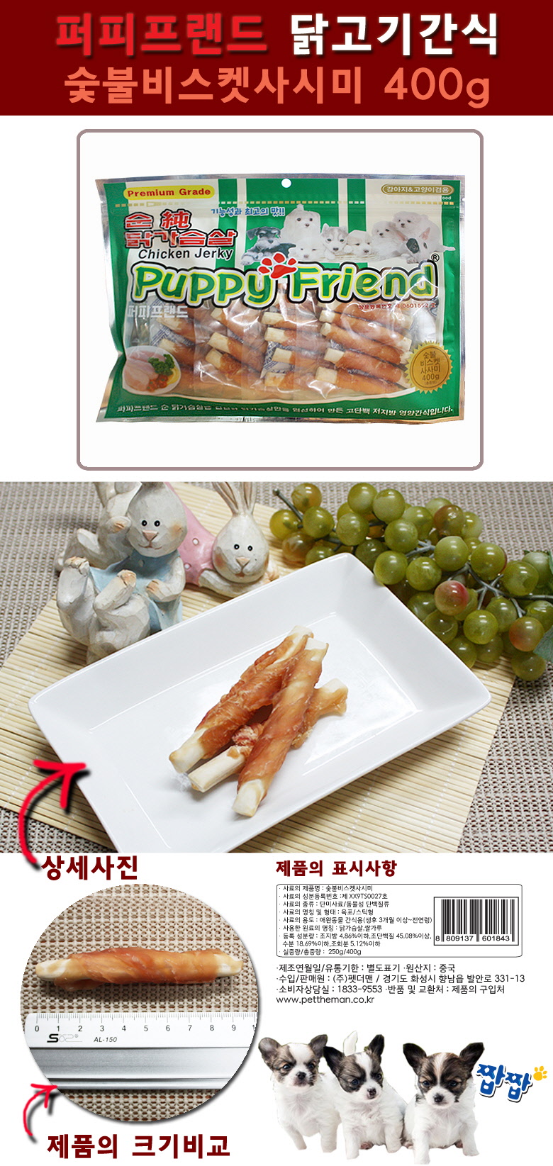 소우피에 신선한 닭가슴살을 말아 건조한 간식입니다.