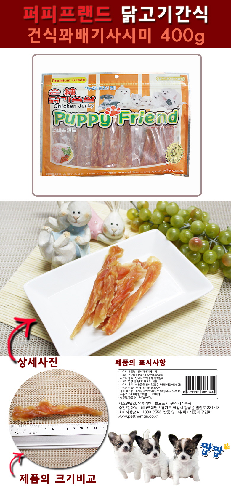 신선한 닭가슴살을 그대로 수분을 높여 건조시켜 부드러운 식감으로 촉촉하게 건조한 간식입니다.