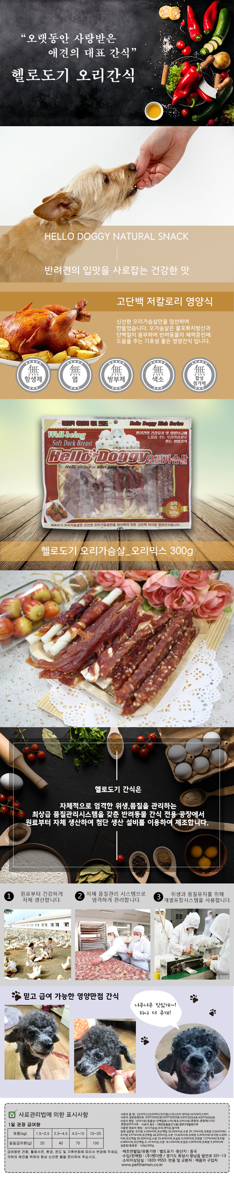 신선한 닭가슴살을 그대로 수분을 높여 건조시켜 부드러운 식감으로 촉촉하게 건조한 간식입니다.