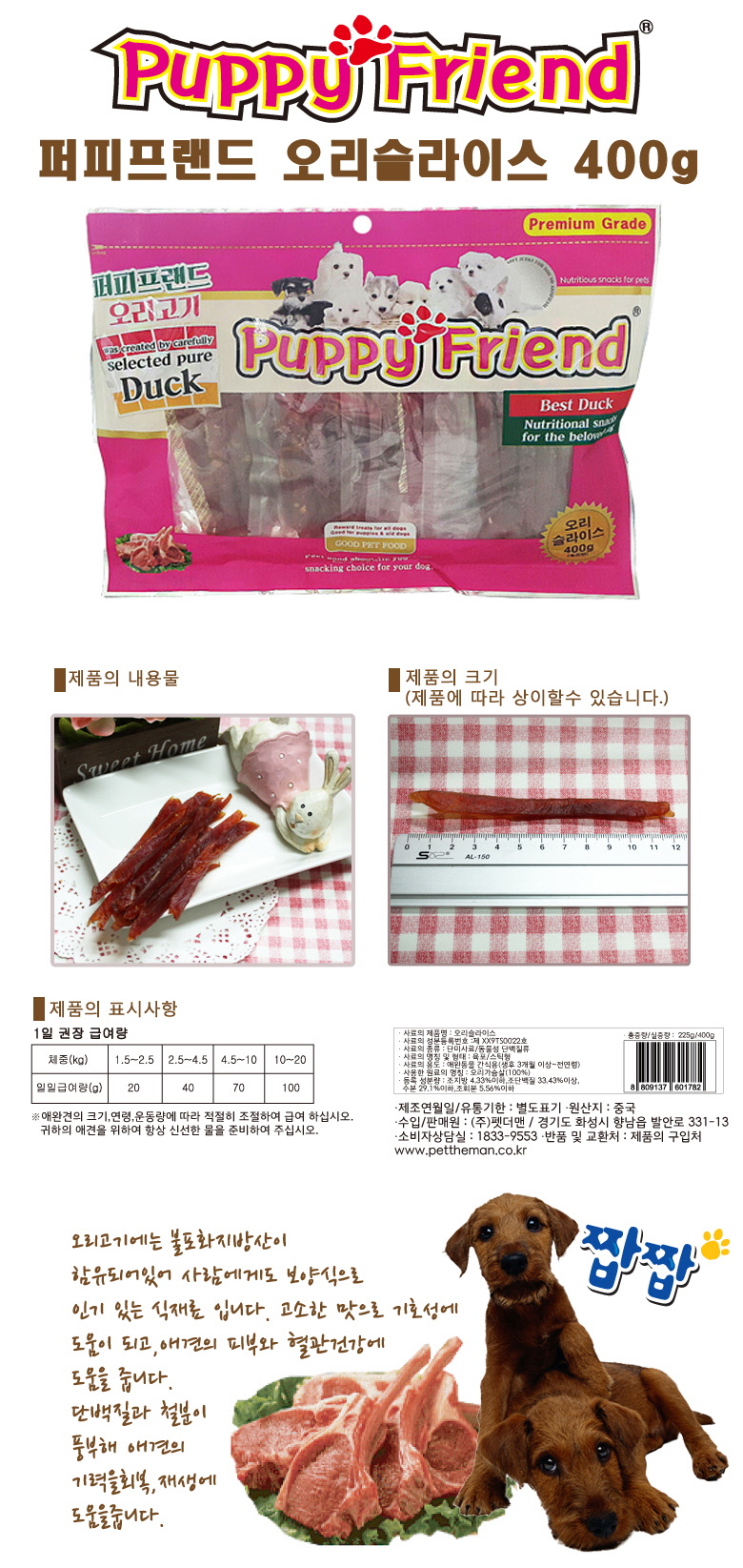 (퍼피)10.오리슬라이스-400g
