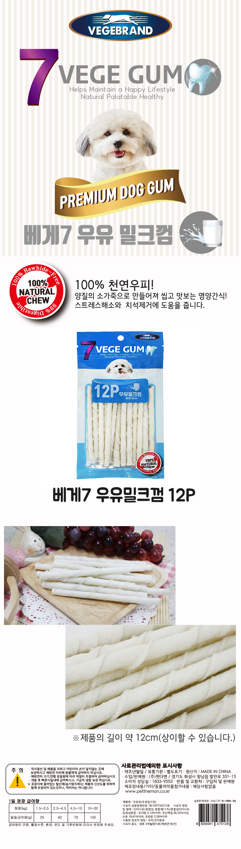 (7베게껌)09.우유밀크스틱껌-12P
