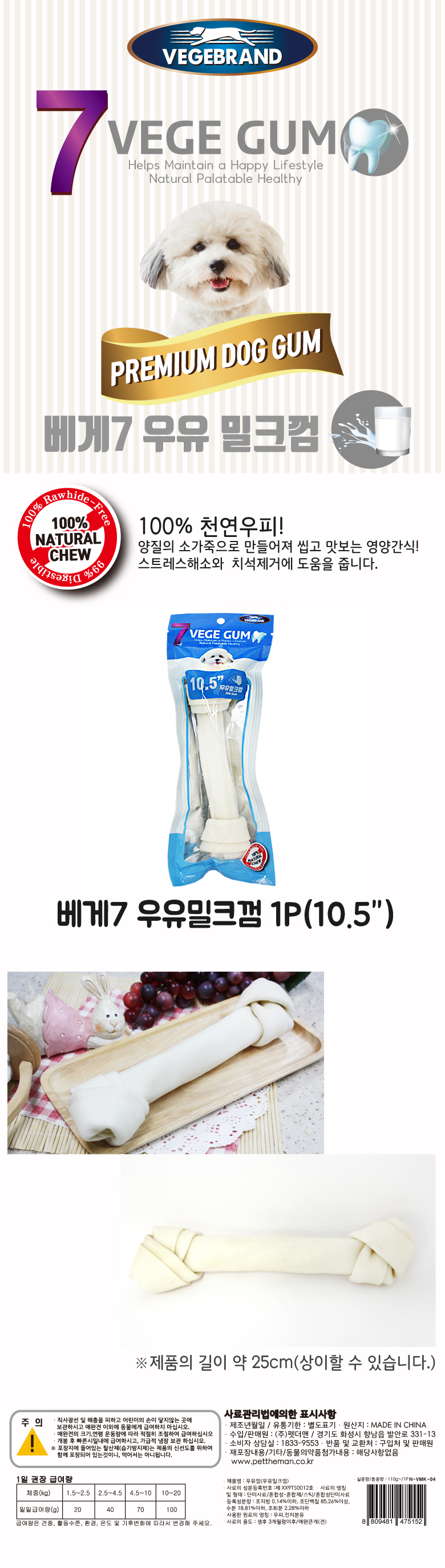(7베게껌)11.우유밀크껌-1P (10.5인치)