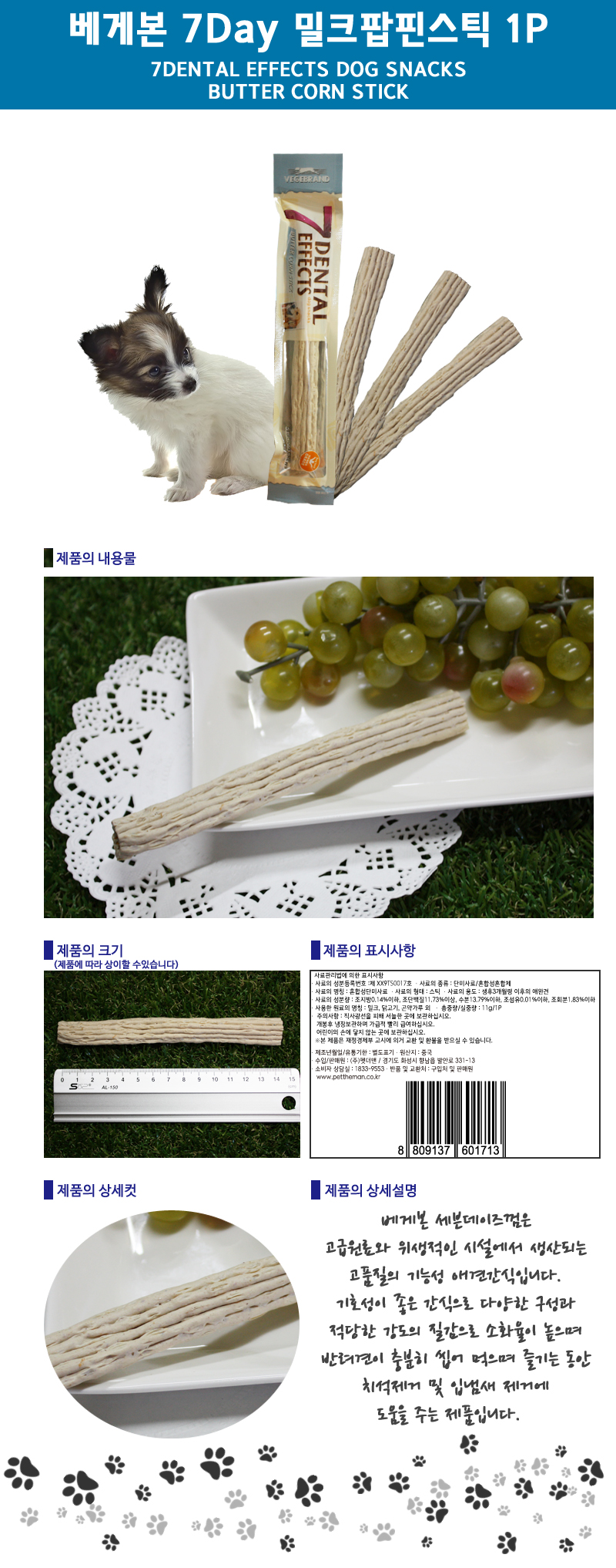소프트타입 껌에 각종고기가 더해져 기호성이 뛰어나며 스트레스완화 치석제거에 도움을 줄 수 있는 껌간식입니다.