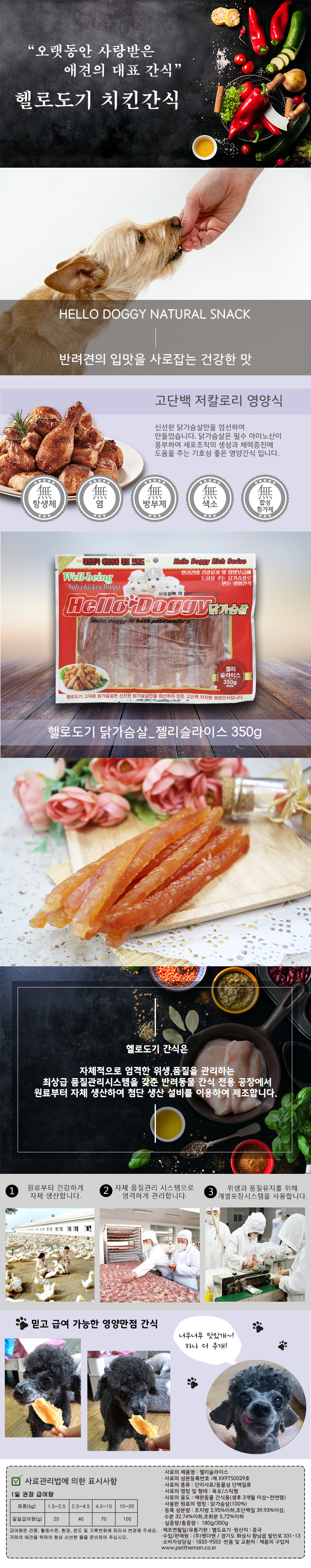 신선한 닭가슴살을 그대로 수분을 높여 건조시켜 부드러운 식감으로 촉촉하게 건조한 간식입니다.