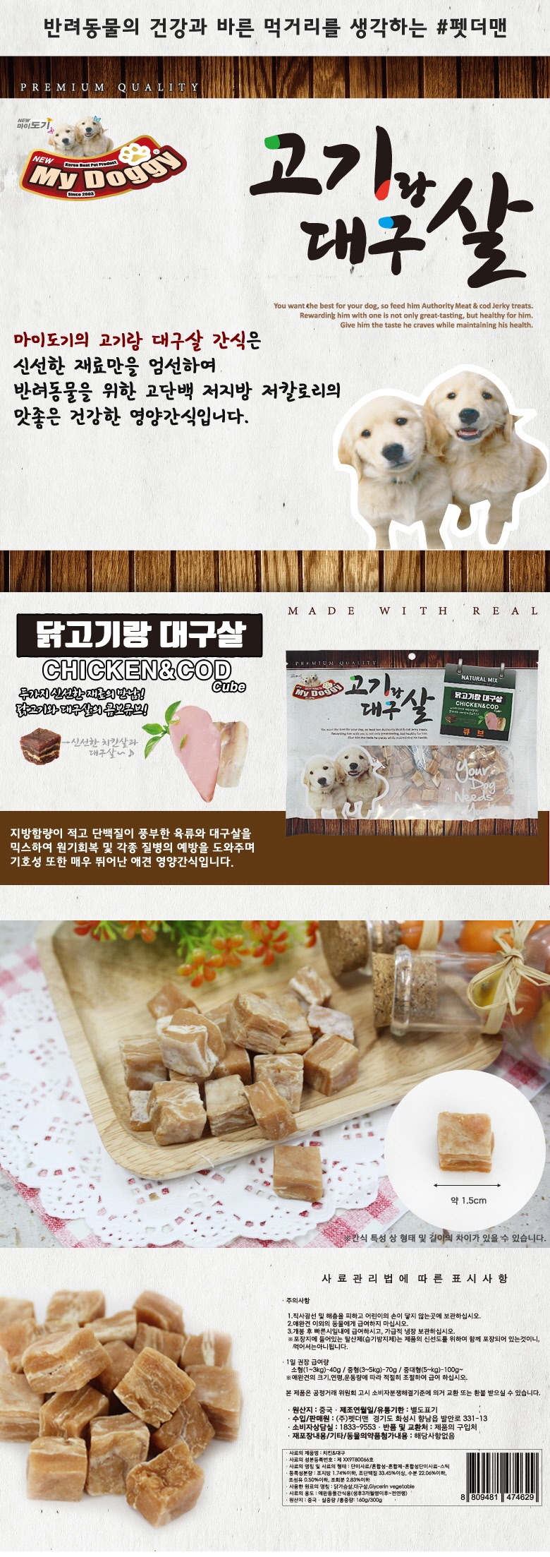 신선한 닭가슴살을 그대로 수분을 높여 건조시켜 부드러운 식감으로 촉촉하게 건조한 간식입니다.