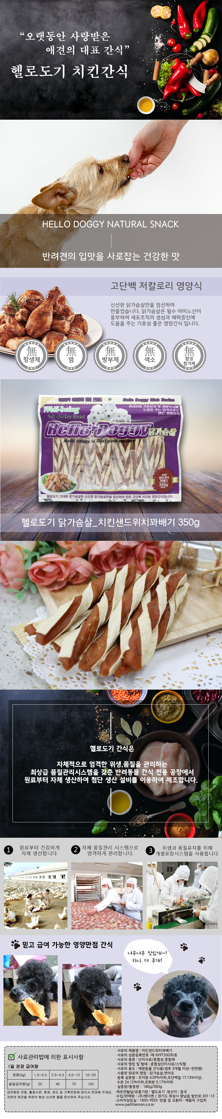 신선한 닭가슴살을 그대로 수분을 높여 건조시켜 부드러운 식감으로 촉촉하게 건조한 간식입니다.