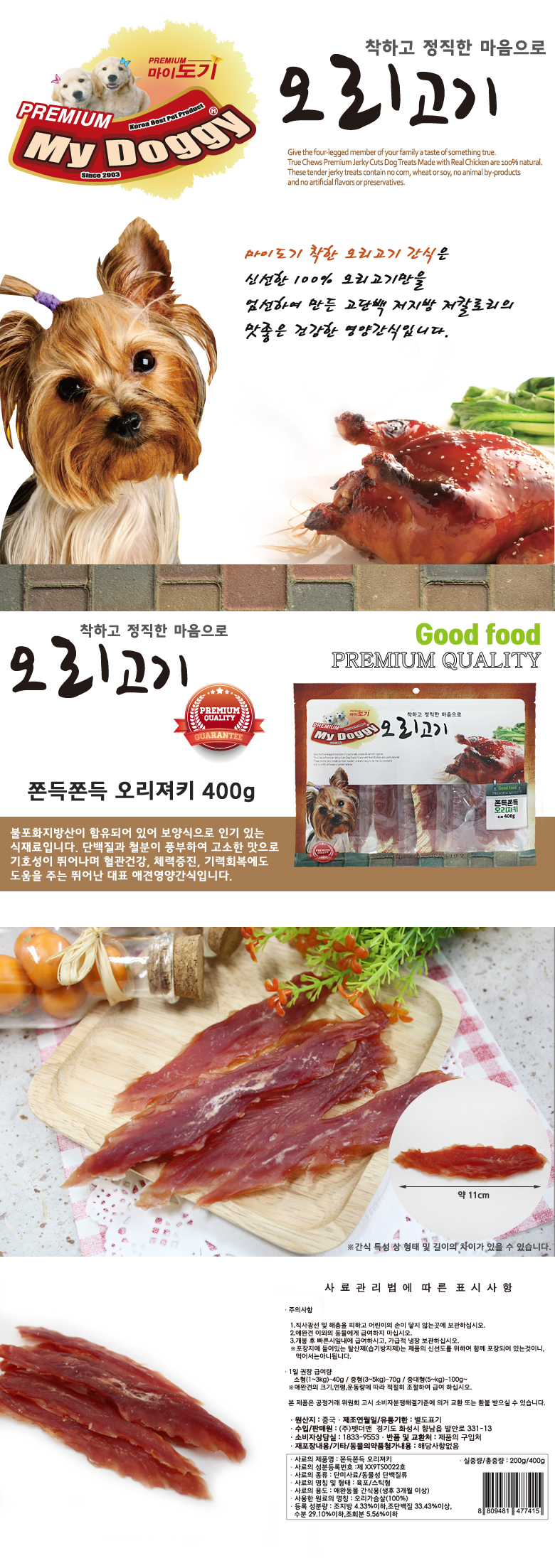 신선한 닭가슴살을 그대로 수분을 높여 건조시켜 부드러운 식감으로 촉촉하게 건조한 간식입니다.
