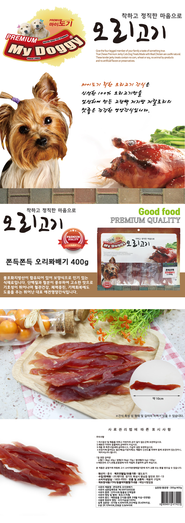 신선한 닭가슴살을 그대로 수분을 높여 건조시켜 부드러운 식감으로 촉촉하게 건조한 간식입니다.