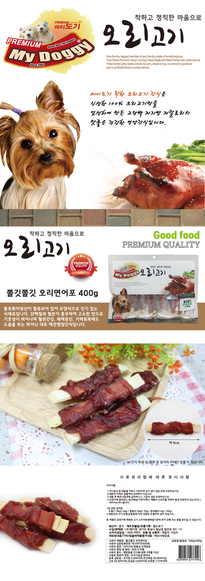 신선한 닭가슴살을 그대로 수분을 높여 건조시켜 부드러운 식감으로 촉촉하게 건조한 간식입니다.