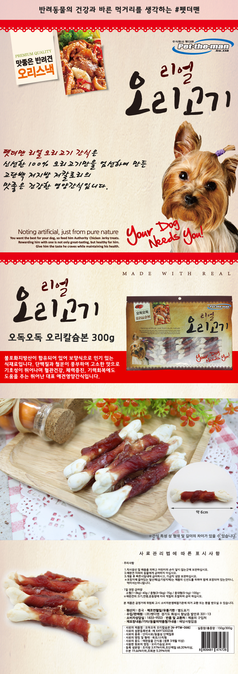 신선한 닭가슴살을 그대로 수분을 높여 건조시켜 부드러운 식감으로 촉촉하게 건조한 간식입니다.