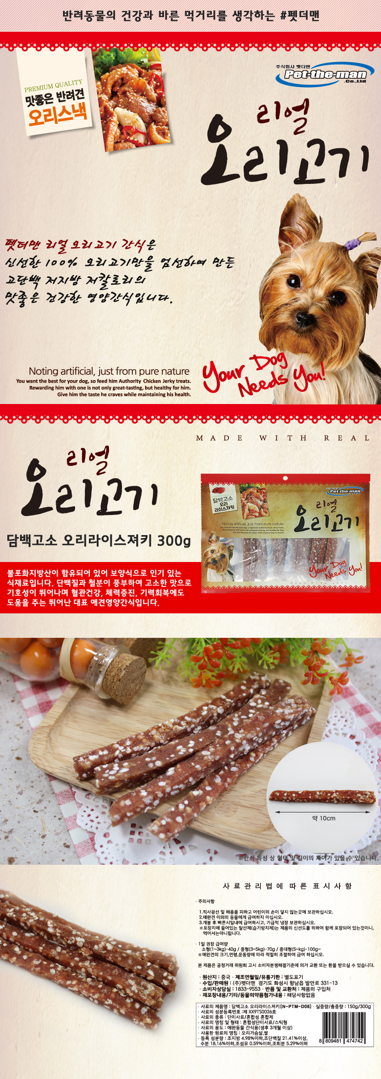 신선한 닭가슴살을 그대로 수분을 높여 건조시켜 부드러운 식감으로 촉촉하게 건조한 간식입니다.