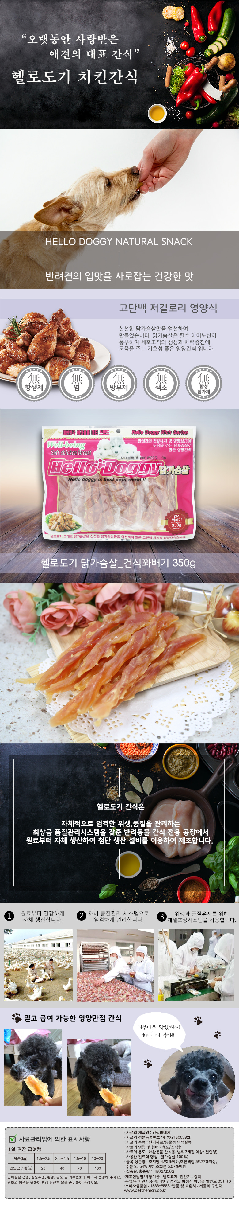 신선한 닭가슴살을 그대로 수분을 높여 건조시켜 부드러운 식감으로 촉촉하게 건조한 간식입니다.