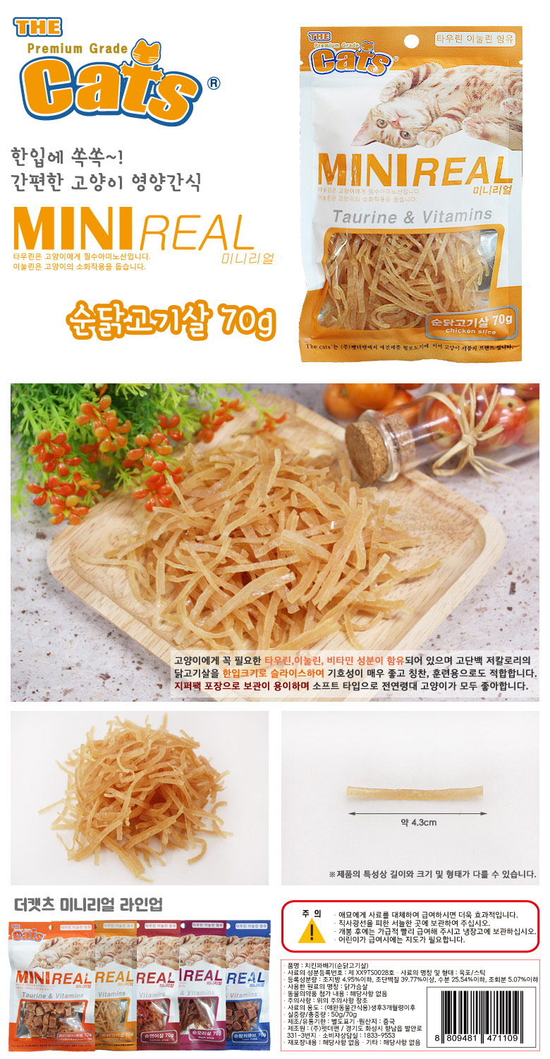 신선한 닭가슴살을 그대로 수분을 높여 건조시켜 부드러운 식감으로 촉촉하게 건조한 간식입니다.