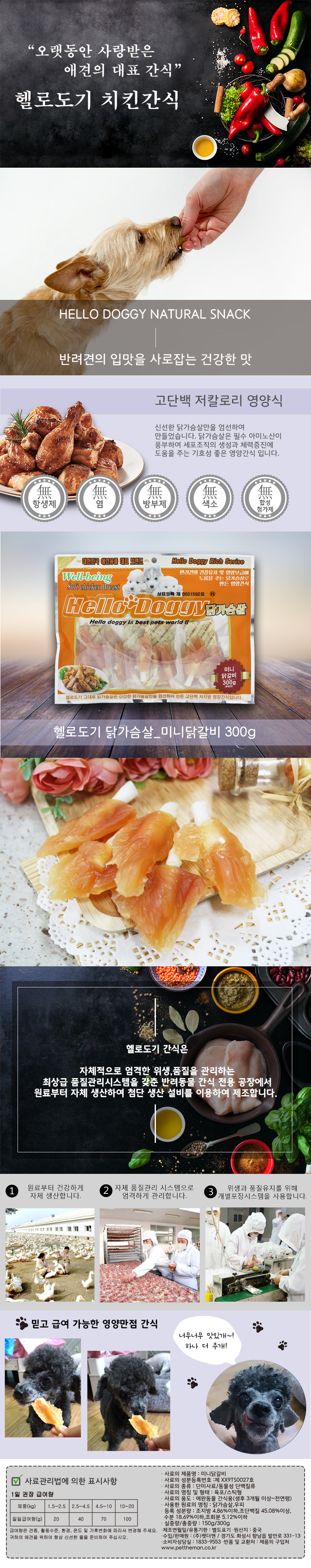 소우피에 신선한 닭가슴살을 말아 건조한 간식입니다. 닭갈비와 동일한 모양으로 급여하기 쉬운 미니 사이즈 입니다.