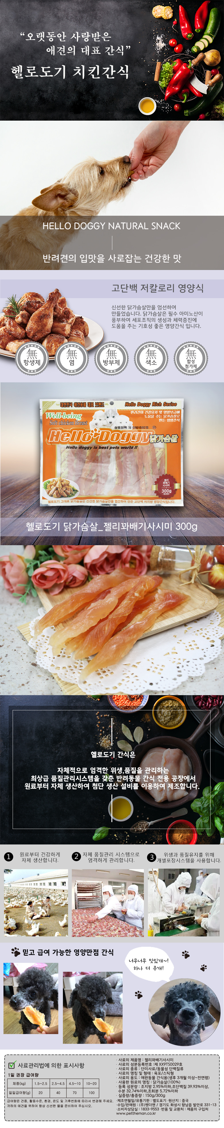 신선한 닭가슴살을 그대로 수분을 높여 건조시켜 부드러운 식감으로 촉촉하게 건조한 간식입니다.