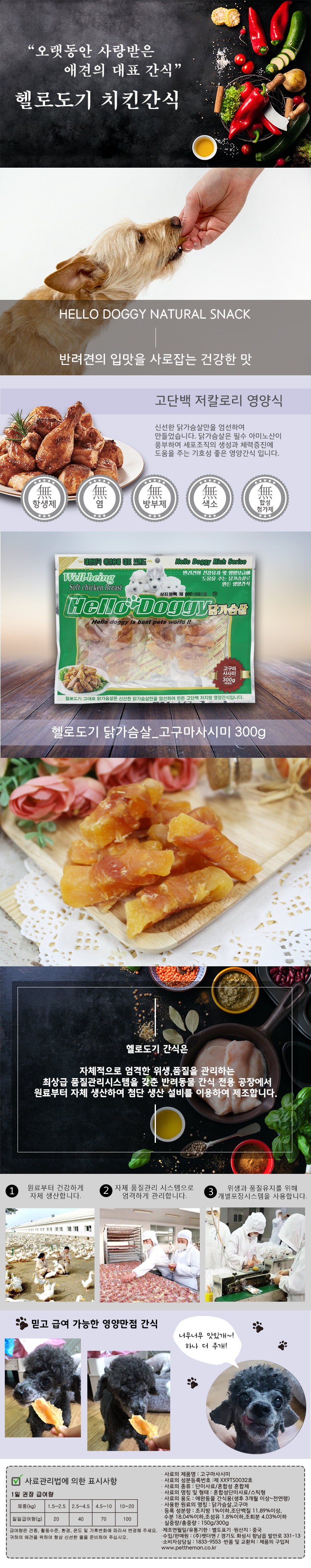 신선한 닭가슴살을 그대로 수분을 높여 건조시켜 부드러운 식감으로 촉촉하게 건조한 간식입니다.