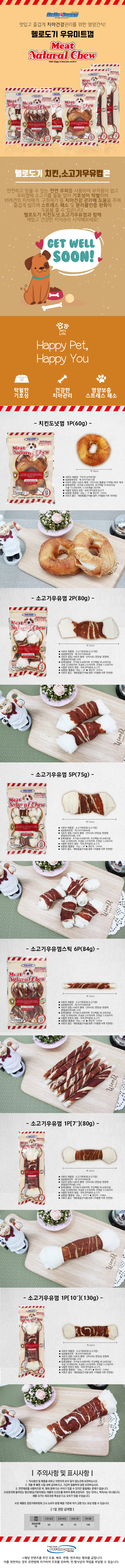 도넛모양의 소우피 우유껌에 닭고살을 말은 간식으로 애견의 스트레스 해소와 치아건강에 도움을 주며, 영양보급에 도움을 주는 껌 간식 입니다.