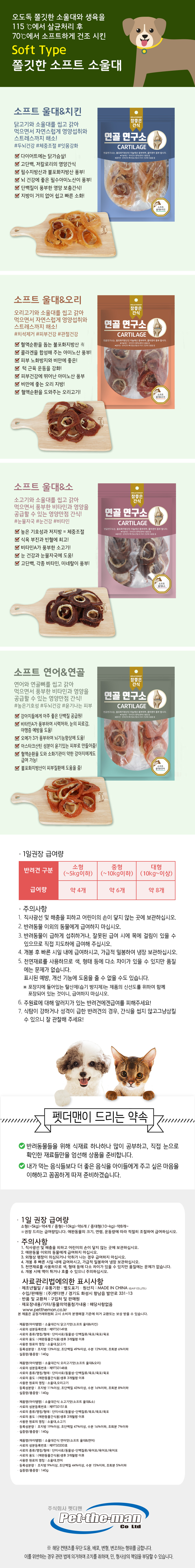 소울대에 닭고기를 감아 오래 씹으며 치석관리 및 스트레스 해소에 좋으며소울대의 풍부한 콜라겐과 캄슘 등이 관전에도 도움을 줄수있는 영양간식입니다.